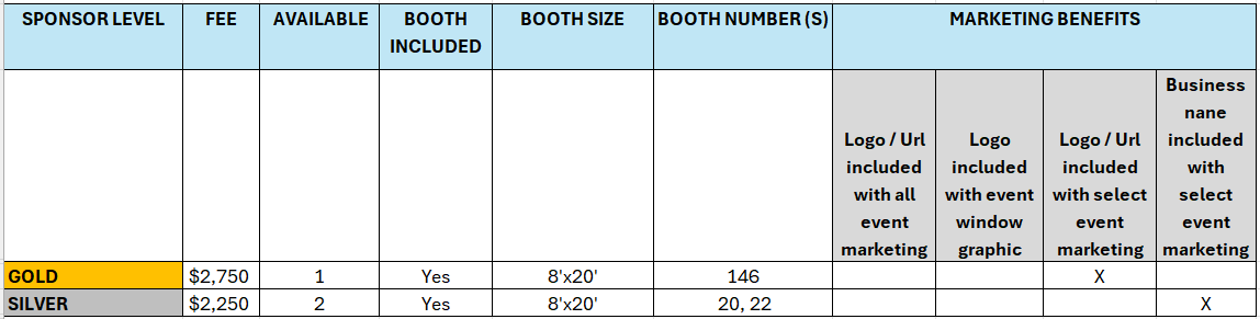 Sponsors receive the best booth placement, plus print and digital marketing benefits that reach thousands! Other sponsor perks include WiFi, free attendance for employees, and an invitation to attend the exhibitor networking social on Friday evening.