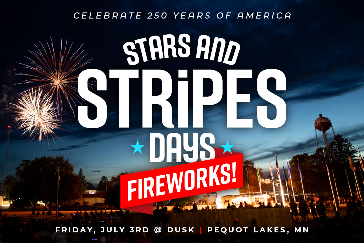 Celebrate Stars & Stripes Days with a spectacular fireworks show on Friday, July 3, 2026 in Pequot Lakes!