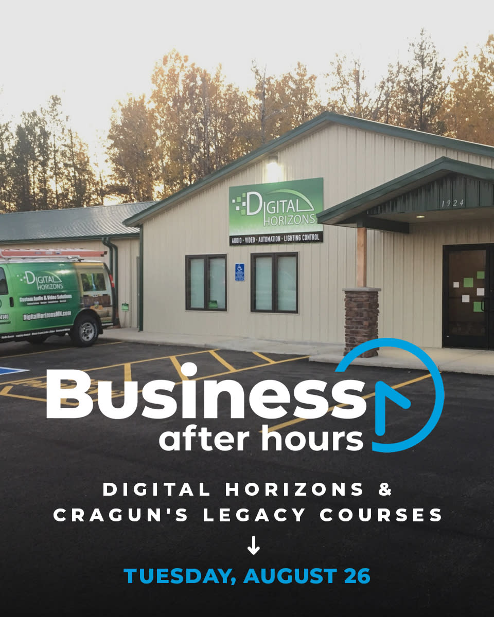 Gather your business team, friends, family and join us for our most popular networking event, Business After Hours, hosted by Digital Horizons and Cragun's Legacy Courses on Tuesday, August 26, 2025, from 4:30 - 6:00PM on the back deck of the clubhouse at Cragun's Legacy Courses. Guests will enjoy this highly popular networking event by mixing with other Chamber members, a variety of delicious appetizers (buttermilk fried chicken bites on waffles with hot honey, porchetta sliders with provolone and sauteed spinach, stuffed mushrooms and crudite platter), beverages (1 free drink ticket per person and an outdoor bar on the deck near the #10 tee), chances for prizes, front row seats of golf pros warming up for the CRMC Championship and learning more about these businesses from Chris Schucker, Co-Owner of Digital Horizons, and Jack Wawro, Director of Golf at Cragun's Legacy Courses, during their interview with Matt Kilian, Brainerd Lakes Chamber President, as part of this free business networking social event.