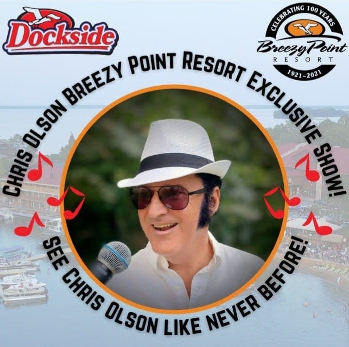 Join us for Chris Olson's 30th consecutive year at Breezy Point Resort performing his Elvis Tribute Show! Enjoy seating right on the water, delicious food and drinks, and entertainment that will get you on your feet!Images