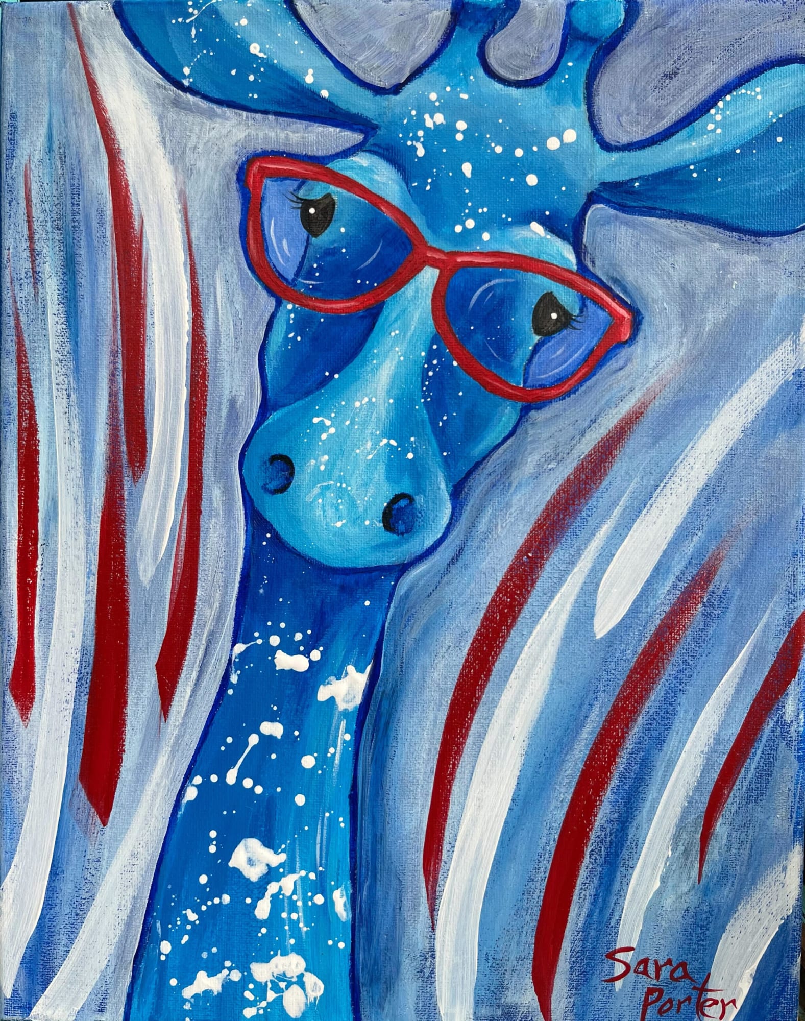 Why a Blue, patriotic giraffe you may ask? Well, why not! If you like giraffes, animals in glasses, and thinking outside the box, then this painting is for you! Display this guy year round or bring him out for Memorial Day, Independence Day, Flag Day, Veteran’s Day, any day! Come to have fun as we paint step-by-step, paint and sip style. Bring your own favorite beverages and treats! We’ll have coffee and tea; bring your own wine. Make it a date night or girls night out, or just for some art therapy. We love to paint here at Kicks! Ages 16+ please!