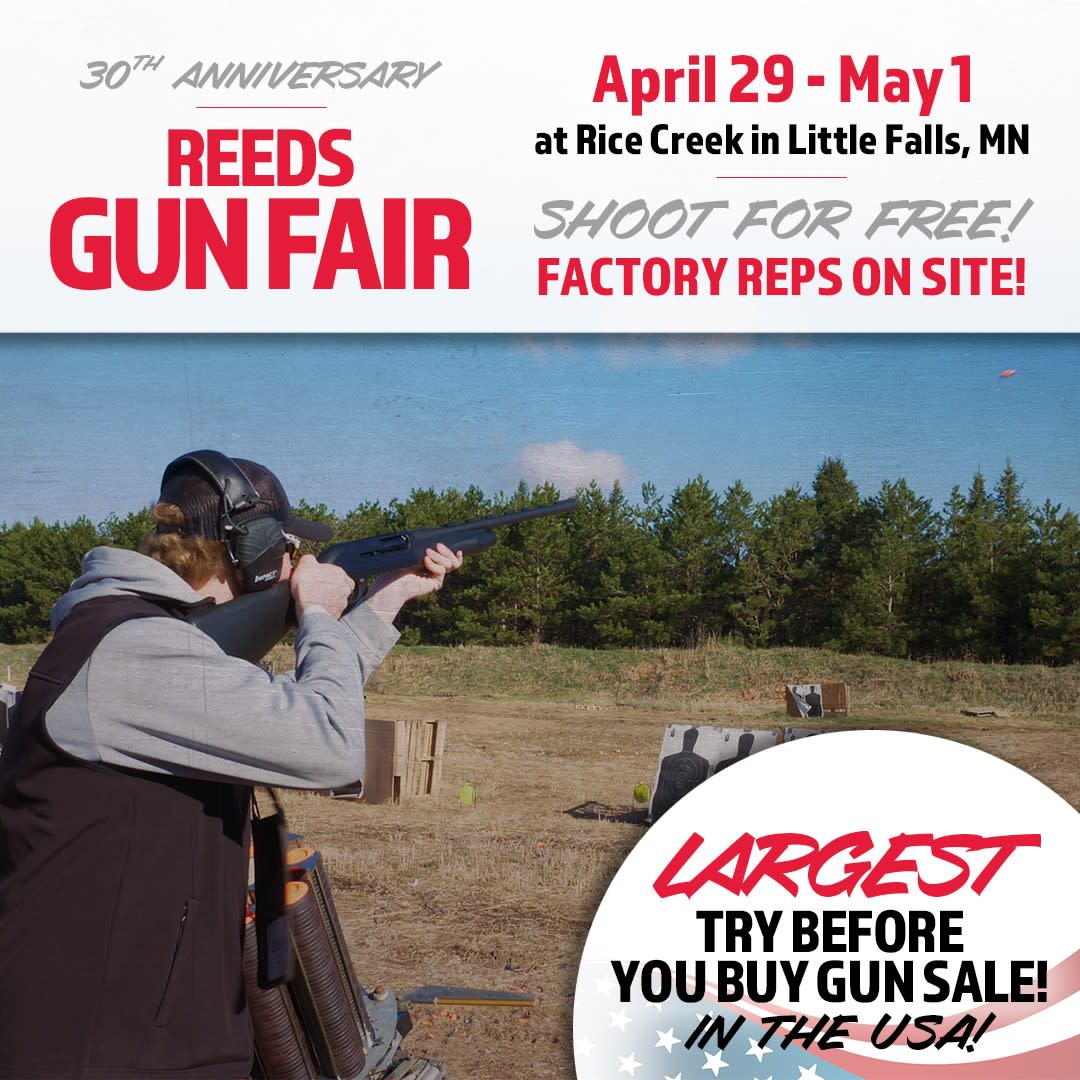 This Ultimate Sale & Expo is a three-day event that includes: Shooting Shows, Exhibitions, Try-Before-You-Buy Factory Test-Fire Gun Tents, New Shooting Games, Special allocations of Truckload Ammo, Over 10,000 guns on sale and Sporting Clays! Reeds Gun Fair is an annual event that occurs each April at Minnesota’s premier Hunting Preserve and Sporting Clay's destination, Rice Creek Hunting Preserve, which is located 5 miles east of Highway 371 near Little Falls, Minnesota.