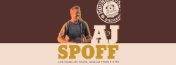 Live music with AJ Spoff on June 1st! Music starts at 6:00pm and goes until 9:00pm.